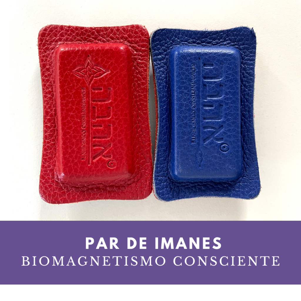 Par de Imanes de Neodimio forrados en piel azul y roja 100% vacuno, reforzado con cosido a mano. Dimensiones iman: 2,5cmx0,5cm. 5625 gauss