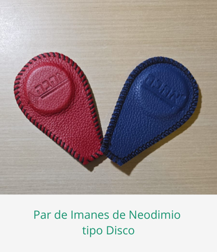 Par de Imanes de Neodimio forrados en piel azul y roja 100% vacuno, reforzado con cosido a mano. Dimensiones iman: 4cm de diámetro 7700 gauss